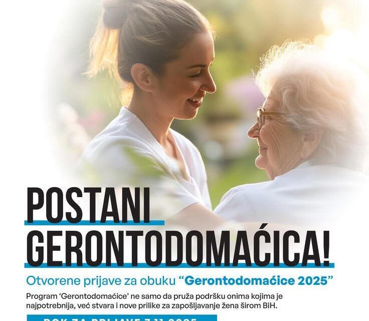 Nakon velikog uspjeha prošlogodišnjeg programa, UN Women u BiH, u suradnji s Federalnim ministarstvom rada i socijalne politike i Federalnim zavodom za zapošljavanje, ponovo organizira obuku „Gerontodomaćice“. Program je to socijalne zaštite koji omogućava pružanje pomoći u kući starijim osobama, osobama s invaliditetom i drugim ranjivim grupama, a istovremeno otvara nova radna mjesta, prvenstveno za žene.